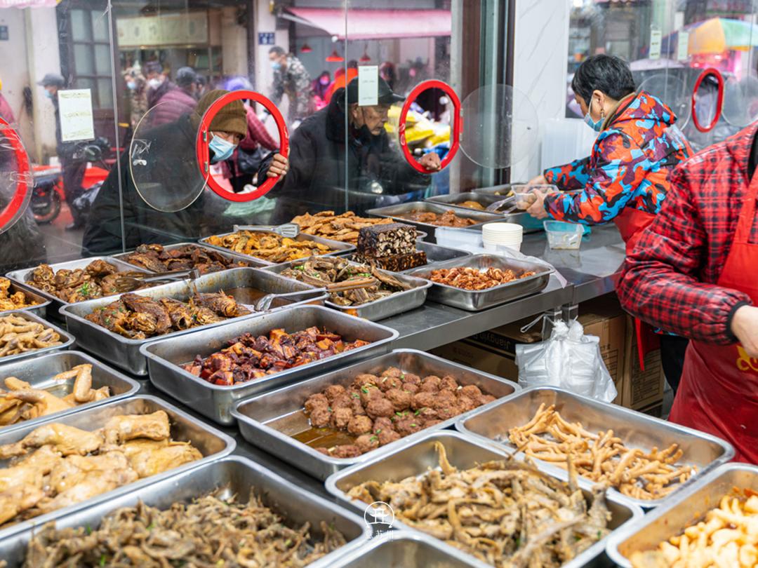 这条街上,还有很多的常熟老字号美食,像沙家浜爊鸡、马永斋,王四食品等。