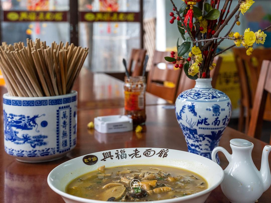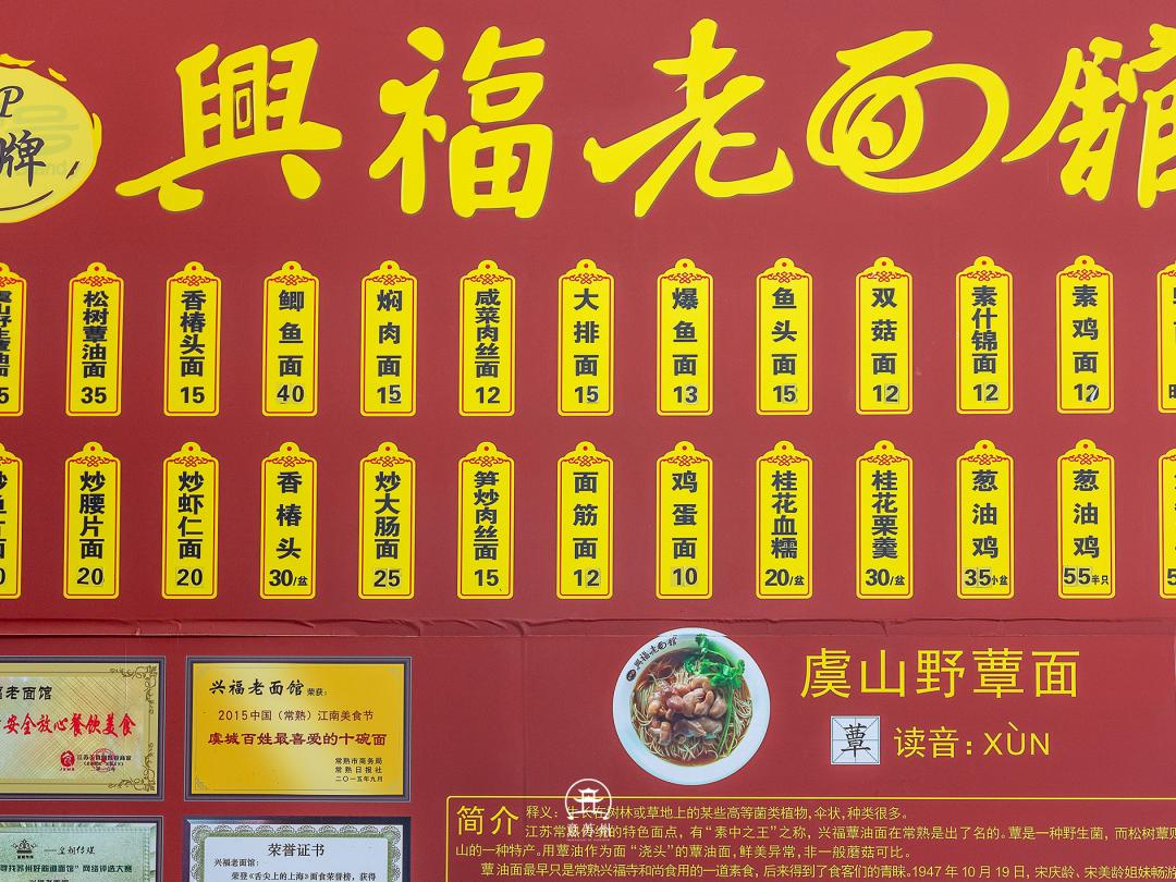 到了中午,那便到了吃一碗虞山野蕈面。这里有两家非常有名气的老字号店,兴福望岳楼老面馆和兴福老面馆。