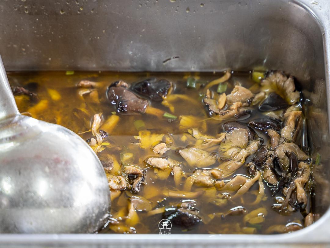 鼎鼎大名的蕈油面实际上并不花哨,就是用普通的菜籽油将香蕈爆香过后,放入八角,丁香,加入盐,糖,酱油适当调味,蕈油的浇头即可出锅。