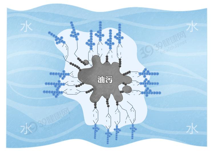 根据相似相溶原理,疏水基团可以和油溶合,亲水基团可以和水溶合。使用洗洁精时,疏水基团可将油污包裹起来,将亲水基团露在外边,轻松将油污从碗筷上分离开。