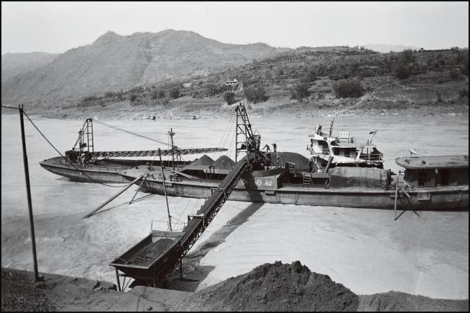 绥江县深水码头上装运煤炭的船驳。云南绥江2008.06