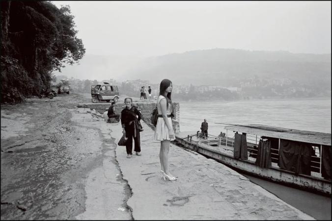 码头上等待过河的年轻女子和老人。云南绥江2010.09