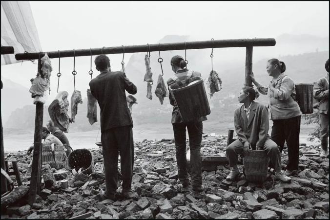拆除后的新滩老街废墟上卖肉的肉的屠夫。云南绥江2009.09