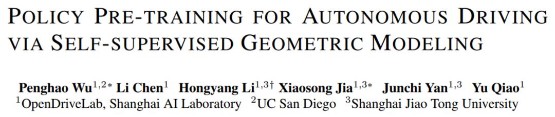 2023 年 1 月 21 日,人工智能顶级会议 ICLR 2023(International Conference on Learning Representations)投稿结果正式公布。上海人工智能实验室自动驾驶 OpenDriveLab 团队成果 —— 基于自监督几何建模的自动驾驶策略预训练方法(PPGeo)被正式录用。PPGeo 是一个基于几何建模的自监督预训练框架,利用大量无标注网络驾驶视频,以自监督的方式对驾驶策略进行预训练,将会显著提升下游端到端感知决策任务的性能。