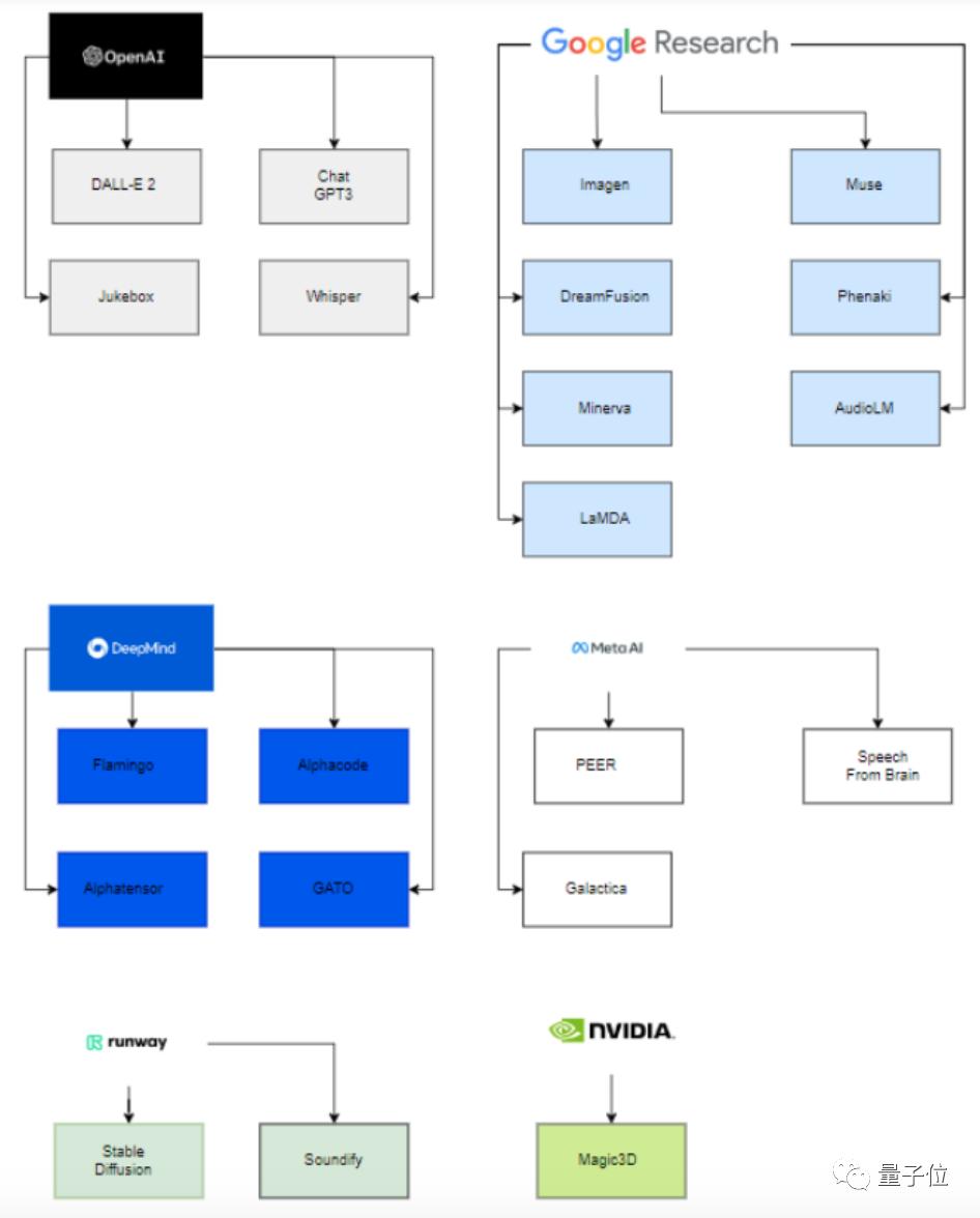 尤其2022年,效果好的AI生成模型层出不穷,又以OpenAI、Meta、DeepMind和谷歌等为核心,发了不少达到SOTA的模型。