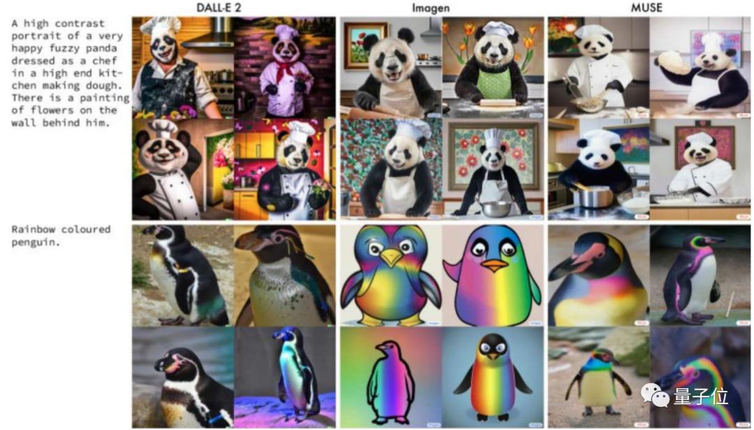 下图是Muse与DALL·E2和Imagen的生成效果对比: