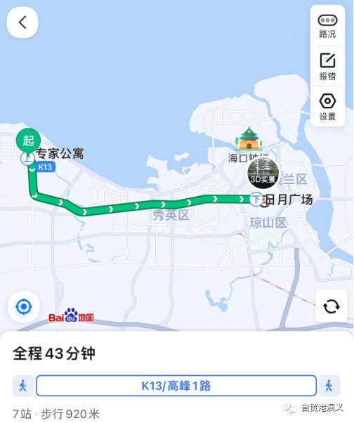 这条线路也非常有意思,因为他会走海秀快速路。这条东西向的高架路,是海口的城市大动脉,他东接国兴CBD,西连海口火车站、新海港,并通过沈海高速、环岛高速连接整个海南岛,全程无红绿灯。我们会途径五源河文体中心,会看到正在建设中的海南科技馆。我们会看到长天路工地上的大塔吊,这条海口最新的南北向大通道,正在抓紧施工中。我们还会途经丘海大道,这里的海瑞文化公园12月30日才建成开园,新春期间正大力举办各种主题文化活动,值得我们为之停留。