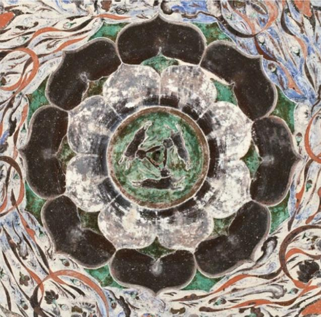 图:敦煌莫高窟第407窟藻井图“三兔共耳图”