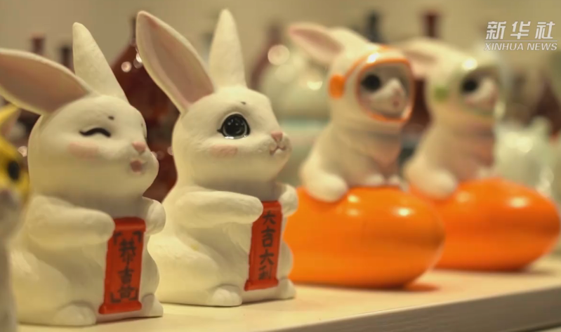 在千年瓷都江西景德镇,以兔子为原型的兔年生肖瓷大量面市,它们或呆萌,或可爱,成了人们喜爱的年节礼物。