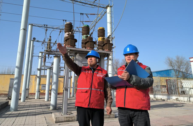 1月24日,冀北承德供电公司变电运维中心员工周伟、赵文宇在220千伏木兰变电站特巡设备。(田野)