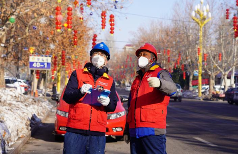 1月22日,陕西西安临潼供电公司员工唐家河、龚小兵在西泉街道麦王村为客户检查电表。(潘世策)