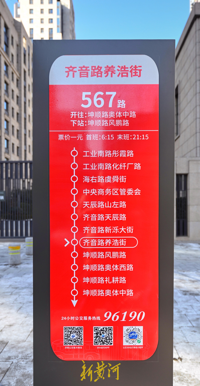 此次开通的567路由坤顺路奥体中路开往工业南路彤霞路,沿坤顺路向西、齐音路向北、天辰路向西,然后单向沿海右路向南、新泺大街向西、彤霞路向北、工业南路向东、海右路向南至天辰路向东恢复原线。