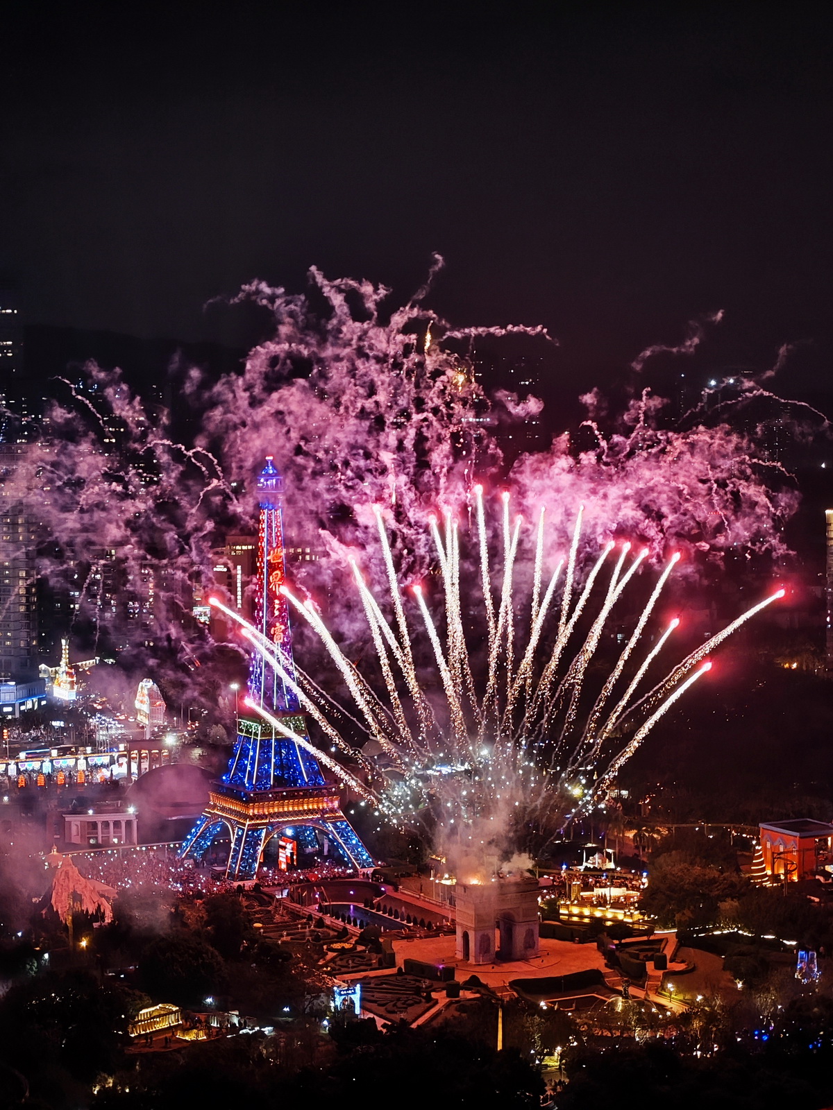 2023年1月25日,深圳,世界之窗景区燃放新年烟花。从年初一到年初六,新年烟花回归,给现场游客一个浪漫的春节回忆。