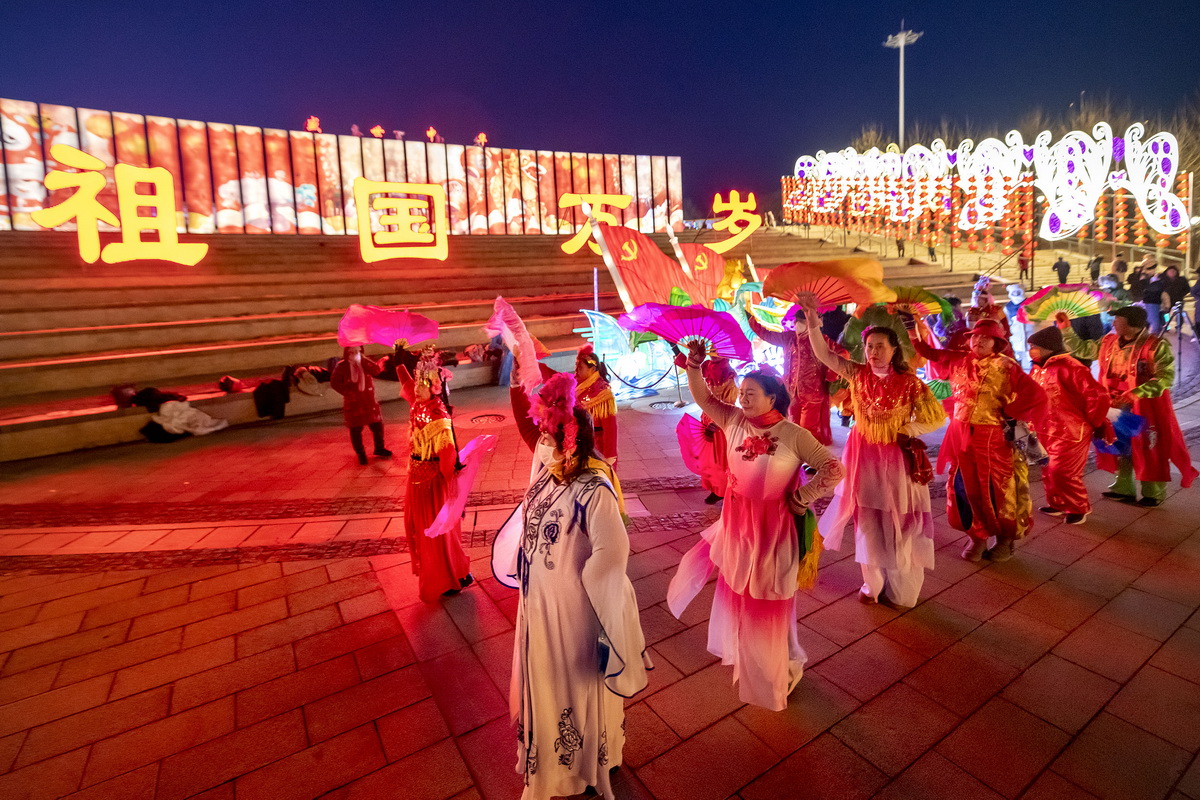 2023年1月26日,大连,金普新区金石滩植物园举办“新春灯会”,由数十人组成的秧歌队在景区内进行表演,呈现出浓浓的节日气氛。