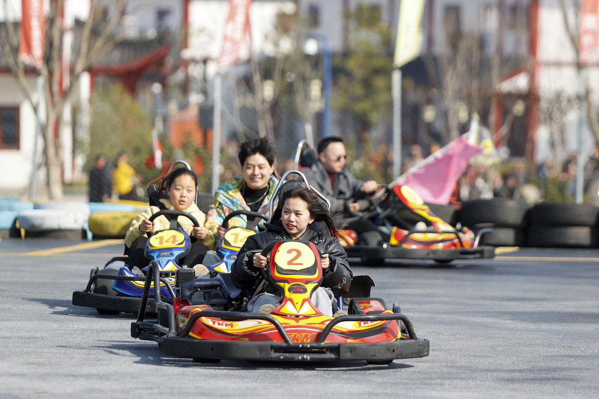 2023年1月27日,江西吉安,峡江县玉笥养生谷,游客驾驶卡丁车。