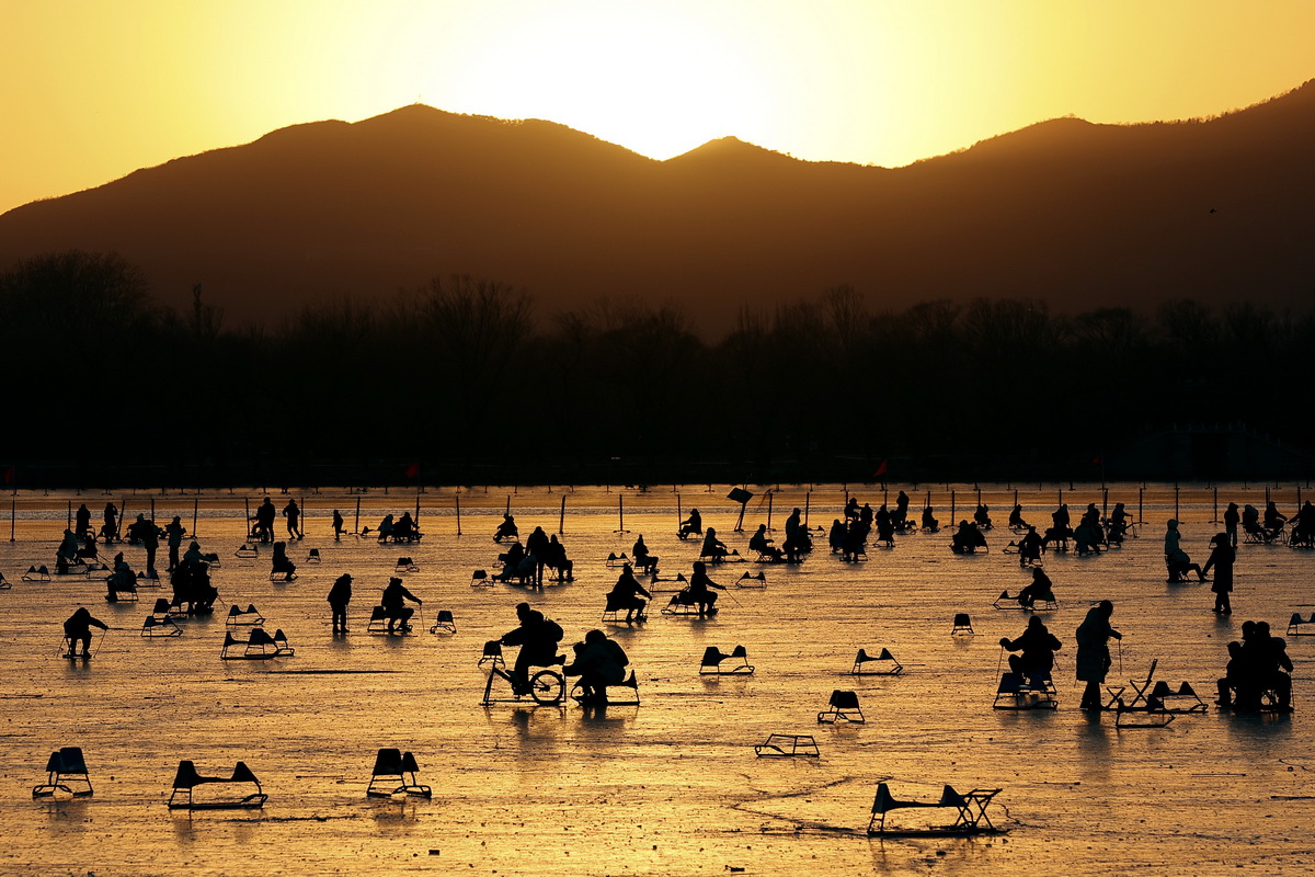 2023年1月27日,北京,春节假期的最后一天,民众在颐和园昆明湖冰场游玩。