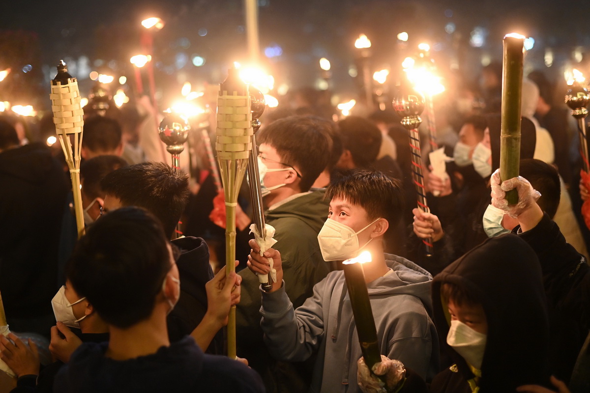 2023年1月27日,广东揭阳,阳美村举行“火把节”。村民们举着火把环村道、过街巷庆祝,祈求平安好运,生活红红火火。
