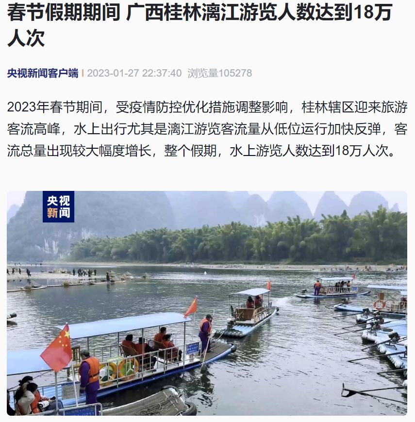 春节假期期间 广西桂林漓江游览人数达到18万人次