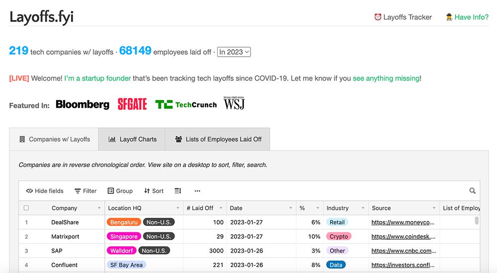 根据Layoffs.fyi网站统计的数据,2022年,全球科技行业裁员超过15万人;2023年初至今,超过200家科技公司已经裁员逾6.8万人。