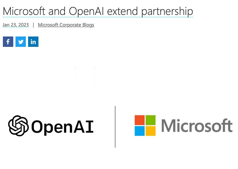 1月23日,微软宣布和OpenAI的长期合作伙伴关系进入第三阶段,将投资数十亿美元,加速前沿AI研究的突破和推进OpenAI模型在各产品中的部署,并强调Azure是OpenAI的独家云提供商。