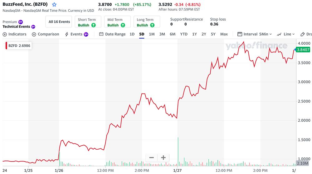 AI内容生成带来的新商机已经蔓延到媒体行业。美国时间1月26日,“美版今日头条”BuzzFeed宣布未来将使用OpenAI ChatGPT帮助创作内容,并透露今年AI内容创作将从研发阶段转变为核心业务的一部分。消息公布后,BuzzFeed的股价连续多日大涨。