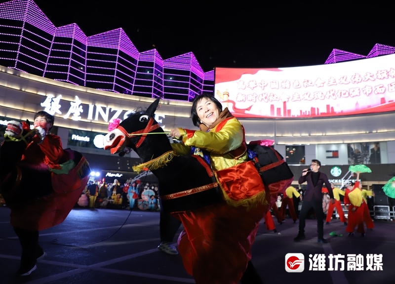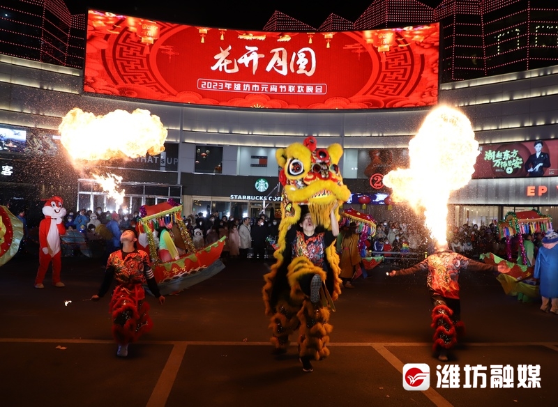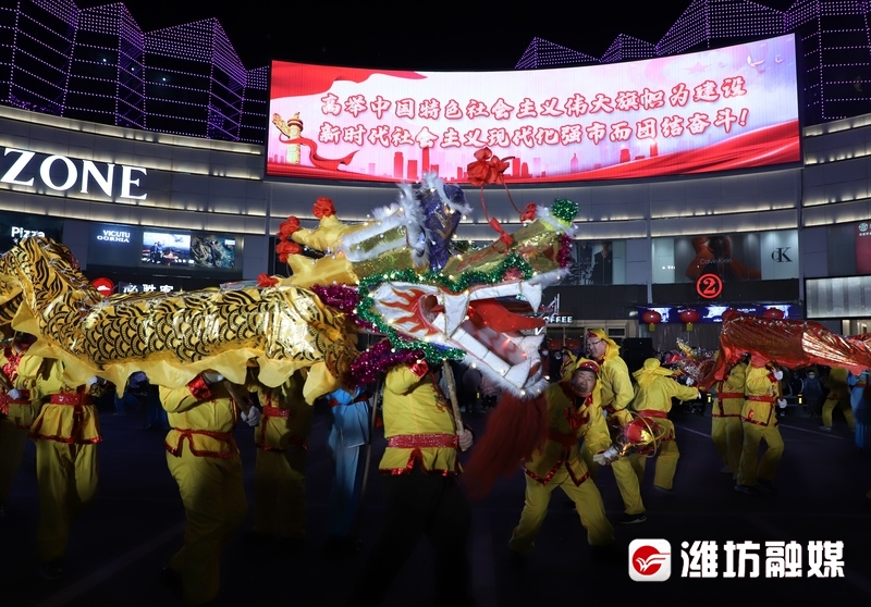 潍坊日报社潍坊融媒讯 为进一步丰富市民新春文化生活,点燃城市烟火气,升腾百姓幸福味,助力文旅市场回暖复苏,1月28日晚,潍坊市(奎文)2023瑞兔迎春 · 龙腾狮舞庆佳节新春文艺汇演在银座购物中心广场精彩上演。