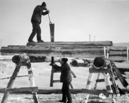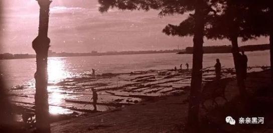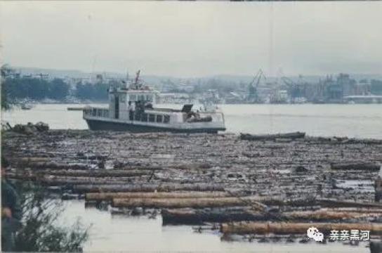 时间进入1970年代后,由于公路的不断沿伸,运输条件的不断改善,黑河有了林业车队,一些林场也有了专门运送木材的车,有一些木材就通过公路从山里运输到黑河等地,这时的江上运输也由原来的人工放木排改为拖船拖拉木排。记得那时我姥爷身体好,又做得一手好饭菜,1980年前后他年逾70还被聘去给拖船上的船员们做饭。从黑河到呼玛、开库康、十八站等地用船拖一次木排往返需要十多天。后来渐渐的也不用船去拖拉木排了,而是直接用驳船往黑河运,用装载机或吊车卸装到汽车上拉进贮木场,有的就直接拉往铁路装火车运输到全国各地。再后来随着大、小兴安蓄木资源的枯竭,黑河这座与木排手牵手的黑龙江畔边城,很不情愿的告别了延续了一百多年的木排时代,当年的放排工人也因为年纪的原因渐渐淡出了人们的视野,他们身上的故事随着时间的推移,消失在历史的长河中。但圆木的身影仍旧频繁的出现在黑河,1990年代之后,中国从俄罗斯进口的圆木从黑河口岸一车车一船船的发往全国各地。