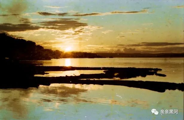 黑龙江上夕阳西下的木排