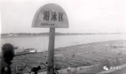 1976年8月文化宫江段在标有“游泳区”的水域停放的木排。