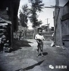 1964年黑河平常人家的一个小院里,小孩的四周全是木制物品(戴欣摄影)