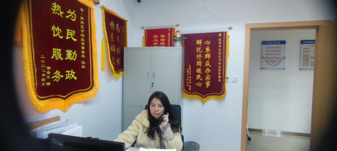1月26日上午10:30,消费质量报记者来到成都高新区市场监管局、区消协探访时,值班人员王星正在接听消费者来电。