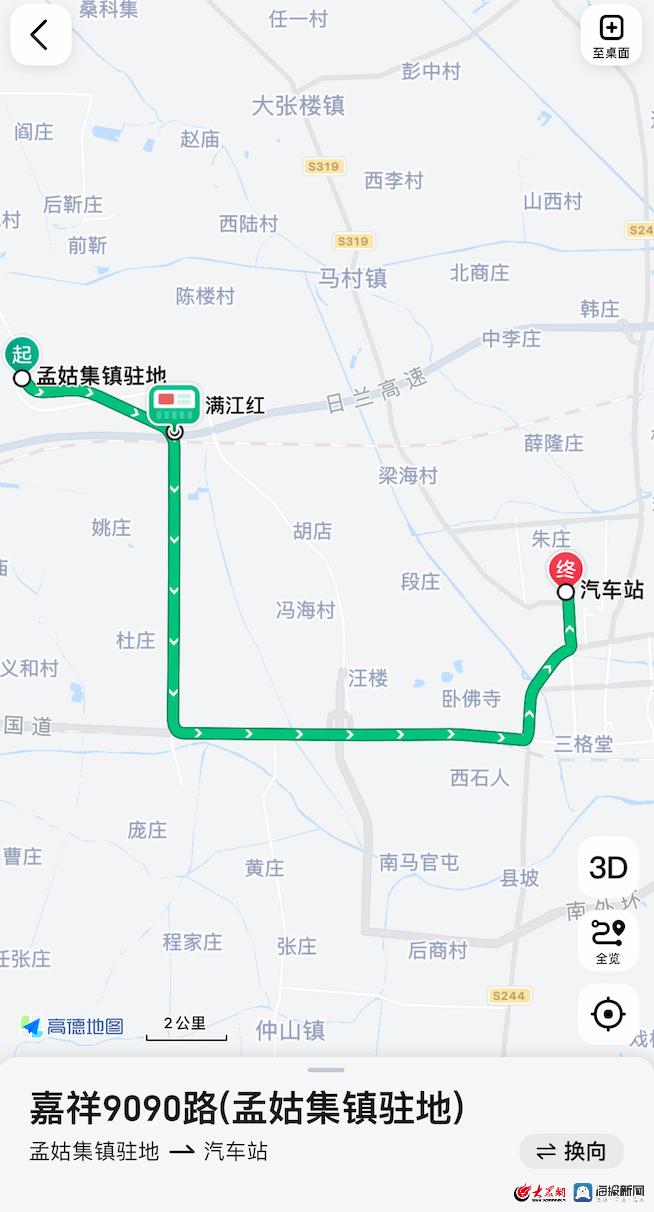 9090路公交车的线路图在距离满江红车站往北步行2公里的地方,有一个岳楼村。记者随后联系到岳楼村党支部书记岳增东,他给出了解释。