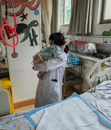抱着孩子安抚的综合ICU医护
