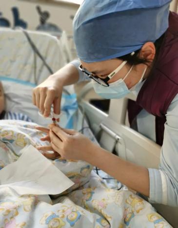 给孩子剪指甲的综合ICU医护小婴儿离开父母缺乏安全感经常啼哭,医护们一有时间就过来陪着,抱抱孩子、给孩子喂奶,尤其是一些肺炎的孩子,医护们经常抱起来安抚。慢慢的,孩子也就平静下来了。