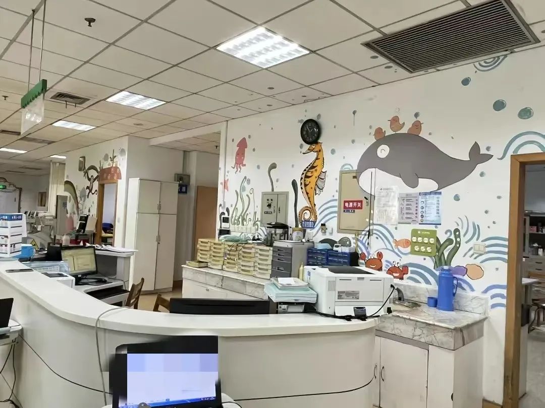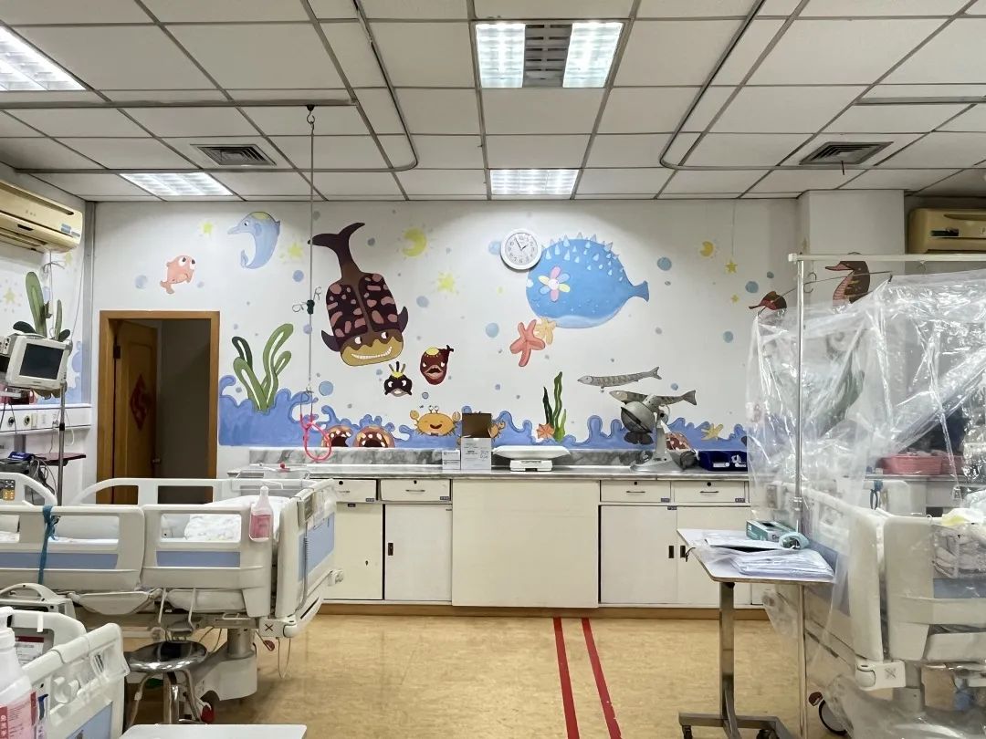 湖滨院区综合ICU中的“海底世界”一走进监护室,就能看到许多卡通图案,就像把海底世界搬上了墙面。孩子们喜欢的小鱼、螃蟹、鲸鱼、海豚、海马、海龟、海草等等,都一一呈现在眼前。