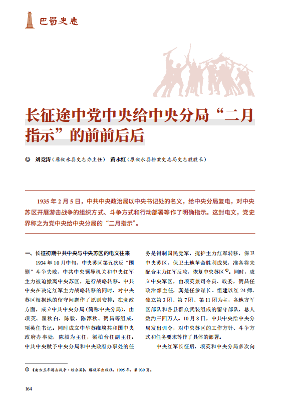 【红色文化】长征途中党中央给中央分局“二月指示”的前前后后‖刘竞涛 黄永红