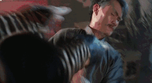 瞧这抓人手臂的力度和神气,生生演绎了"战场如情场"的全庸武学精髓(附注:全庸为地摊文学常见作家,又名山寨金庸)。仇人相见,不再分外眼红,而是你拍一我拍一地玩起家家戏。镜头再多半秒就露馅。