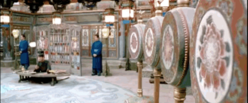 这样远的距离,袖子也许很难撞到鼓上,但章子怡庄重的神态、表情,以及利落的甩袖,结合镜头的剪辑,很难不让人相信,她就是这样一位精湛的舞姬。但凡是镜头没有衔接得当,或是演员表情动作不到位,就只能在后期依赖袖子成精,自动飞行。