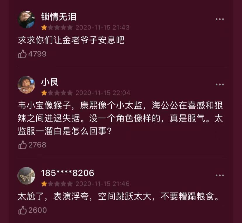 可我认为,新版《鹿鼎记》的失败之处,剧情远多于演员。尤其是“明史案”与“丽春院”等信息的删改。明史案,是编写《明史》而引发的清朝最大文字狱案,这交代了全剧“反清复明”的背景;而丽春院,则点明了韦小宝这个小角色的身份,没有在丽春院跌打滚爬中培养出的圆滑性格,韦小宝很难在皇帝、天地会、神龙教等多个势力间游刃有余。