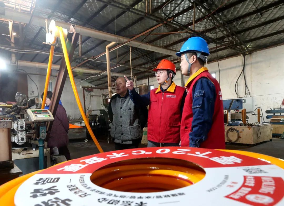 新神龙塑料制管厂主要生产牛筋增强软管、弹力管、流体管及卫浴管等系列产品,生产线具有自动化程度高、对连续生产稳定性要求高等特点。29日当天是该企业节后开工第一天,工人们一大早打开管材生产线对机器进行预热时,温县供电公司陈家沟供电所两名党员服务队队员就来到了车间,他们对厂房内外的供用电线路进行“体检”,指导客户科学用电、安全用电。