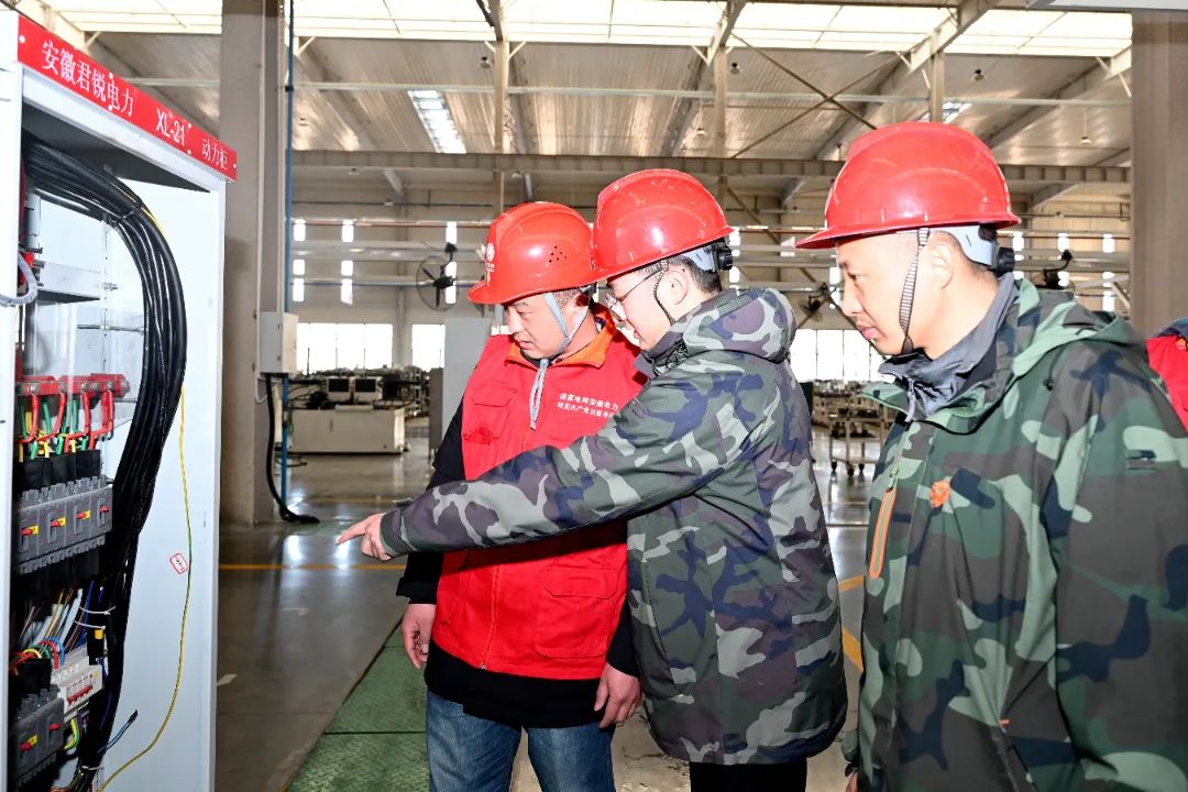 1月29日,安徽六安金寨供电公司员工在安徽雅迪机车有限公司检查企业用电线路、设备。(张朋 詹杨)