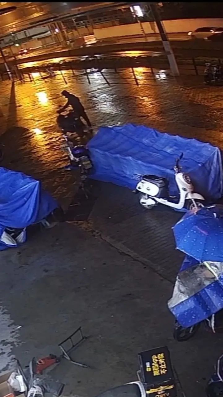 “新的,那个车是客户在网上买的,不能上牌,就放我这里,结果被偷走了。六点多,我在监控里看到了。”