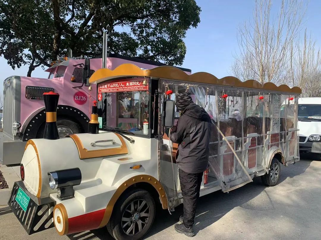 “碳惠绿道”已完成路面施工,沿山一侧划出了2米宽的绿色人行步道,能与游览车道明显区分开,更好保障游客行走安全。如果走不动路了,也可以乘坐招手即停的旅游观光“小火车”。