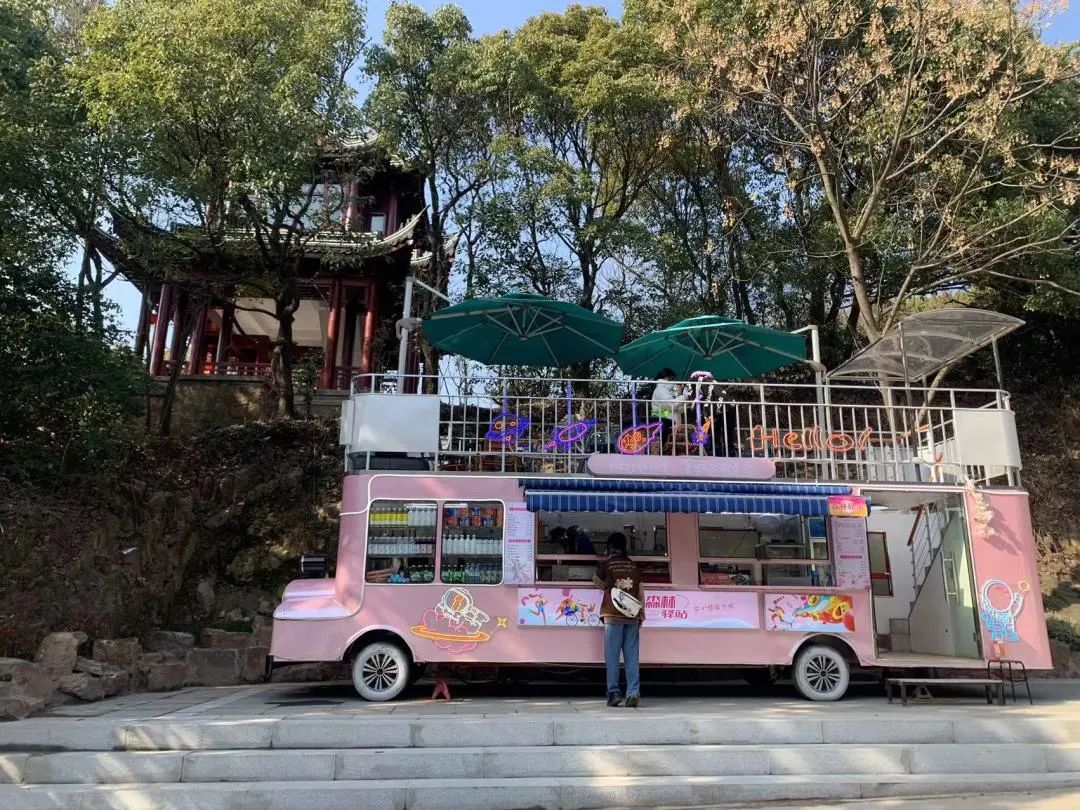 新添的“网红打卡点”,颜值高、功能全。为方便市民运动补给,除了增设饮料自助售卖机外,景区还在二茅坪和三茅坪引入了两辆餐车巴士,咖啡、泡面、汉堡等一应俱全。双层餐车巴士的二楼还设置了卡座,让游客在休息用餐的同时也能俯瞰森林美景。