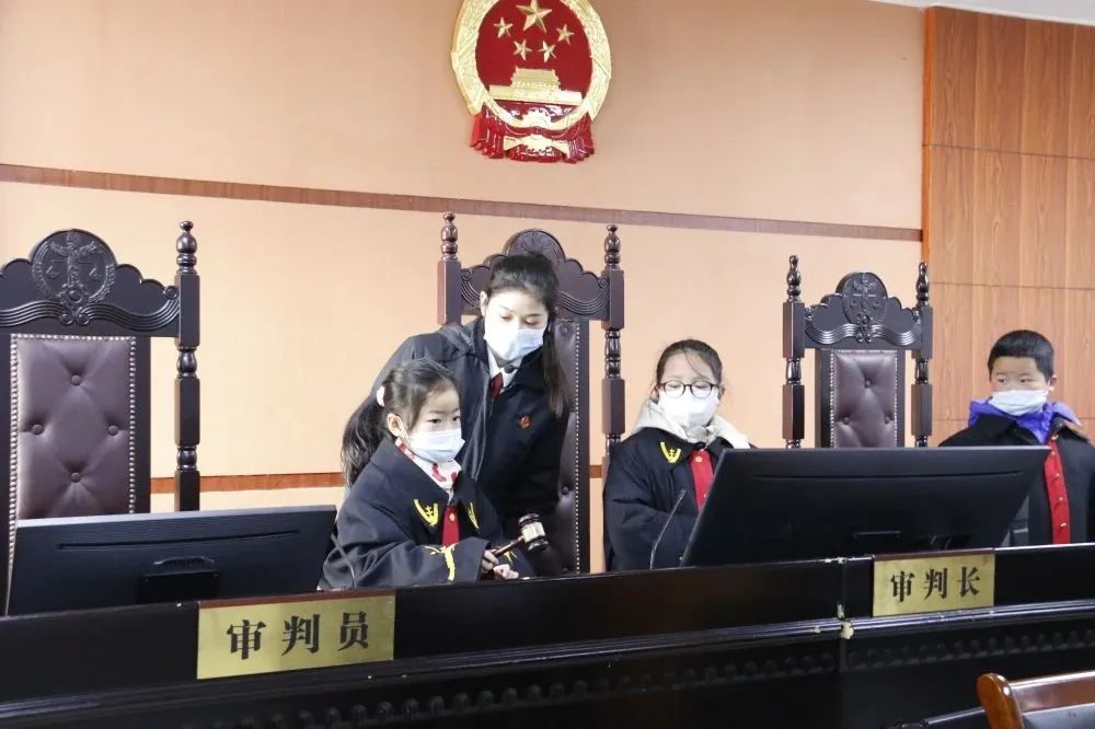 在第四法庭,孩子们化身“小法官”坐上审判席,感受法庭之威严,法律之公正。