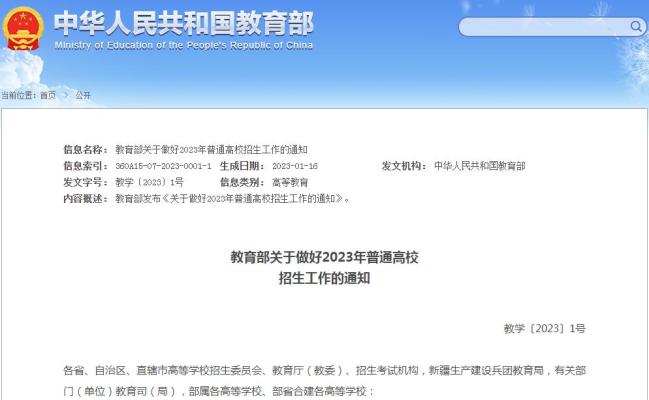 根据同步发布的《2023年普通高等学校招生工作规定》