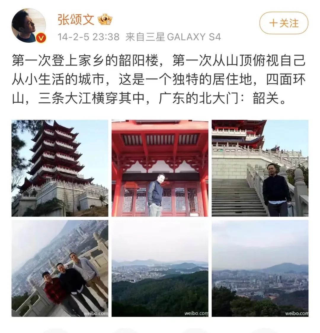△ 张颂文在微博上介绍自己家乡—韶关 图源:张颂文微博截图