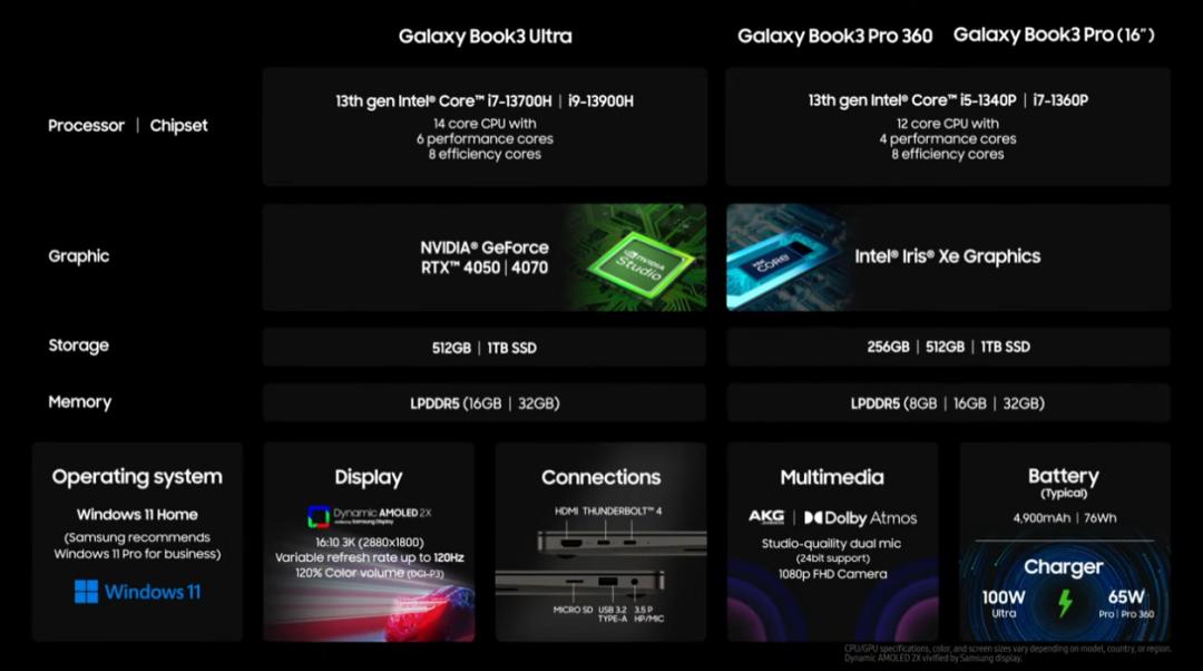 到了发布会的后半部分则是电脑专场,三星发布了 Galaxy Book3 Pro 、Book3 Pro 360 和 Book3 Ultra 共三款新品。