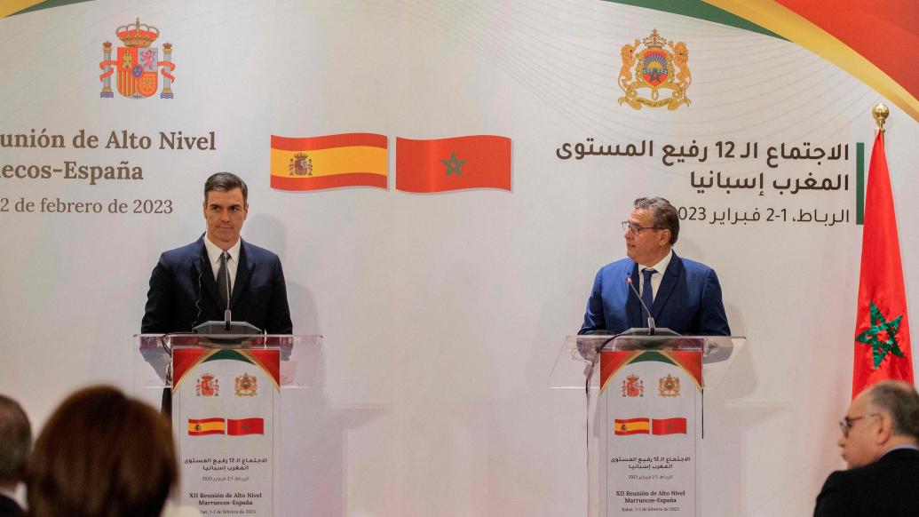 当地时间2月2日,摩洛哥首相阿赫努什同到访的西班牙首相桑切斯于摩洛哥首都拉巴特举行会谈,双方达成承诺“相互尊重”,试图修复因移民争端、领土争端等事件长期紧张的关系。