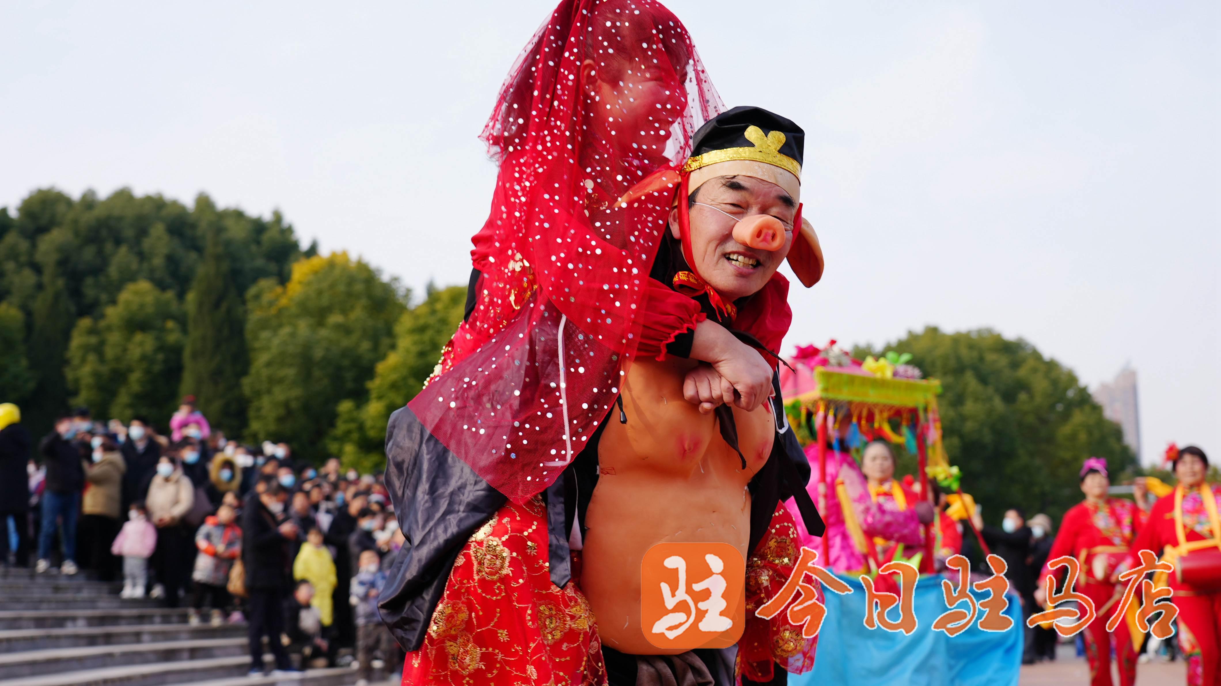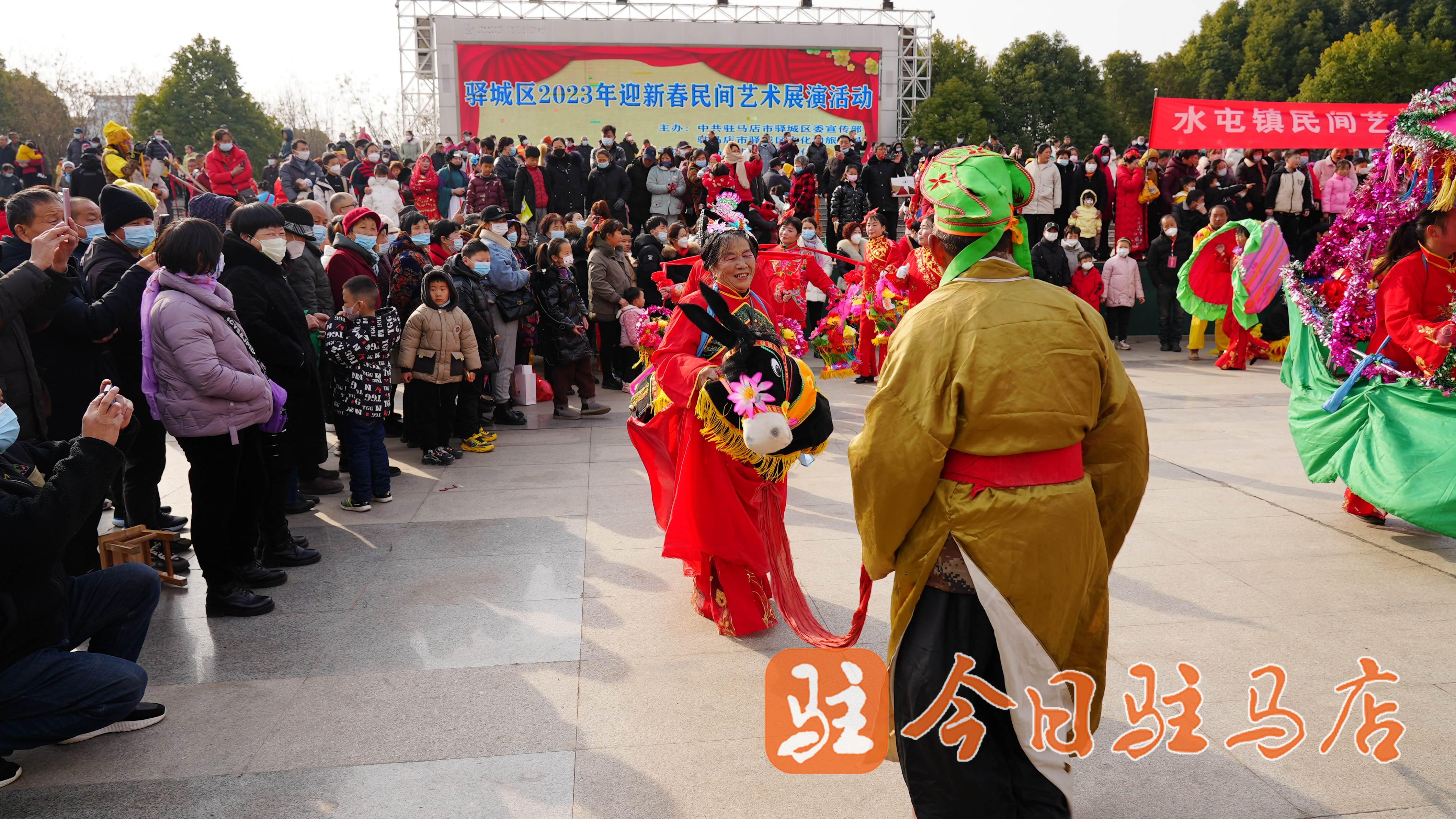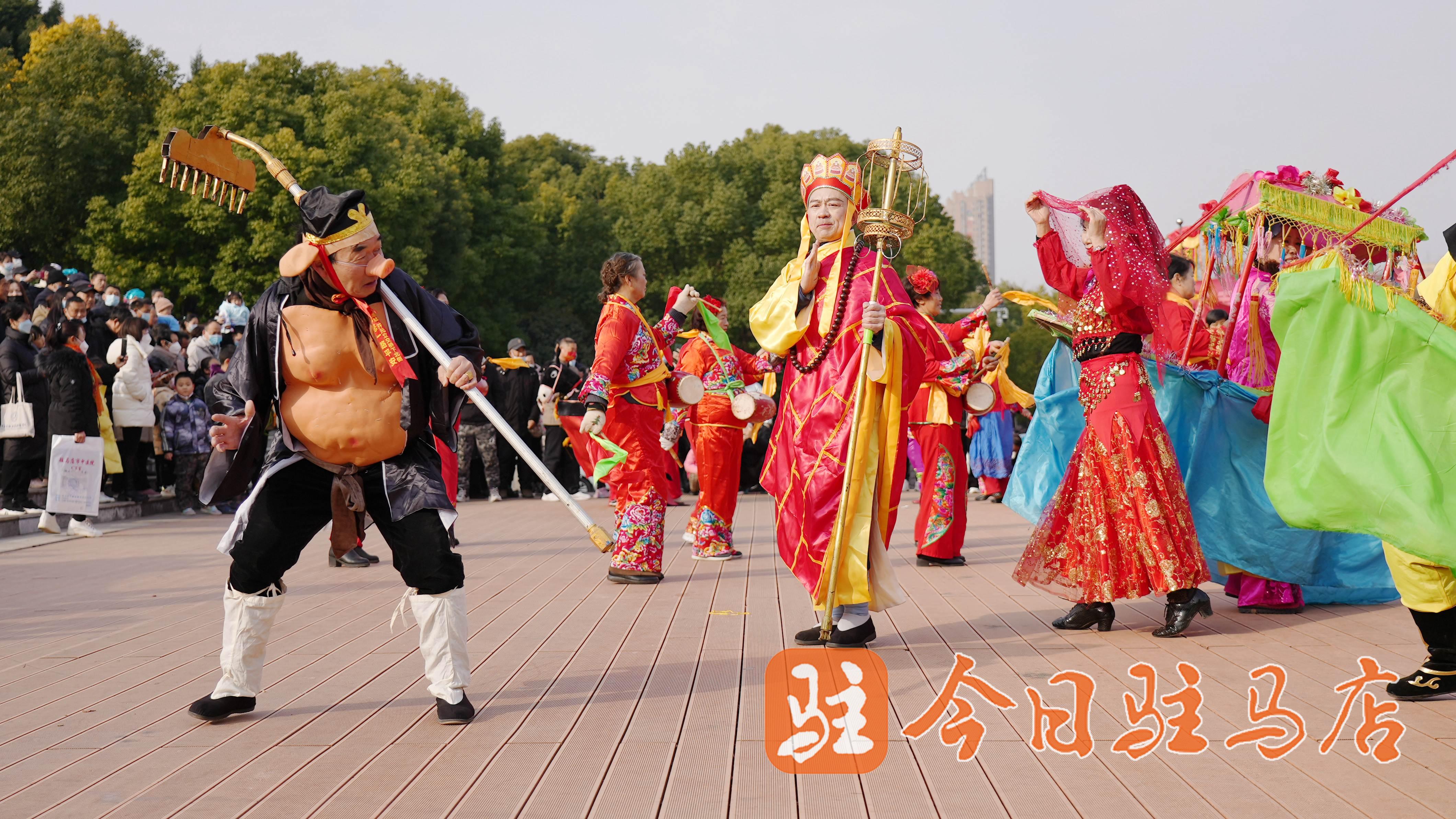 看舞狮、八戒背媳妇、划旱船……2月3日,驻马店世纪广场内锣鼓喧天,丰富多彩的民俗文化活动吸引了大批群众围观。